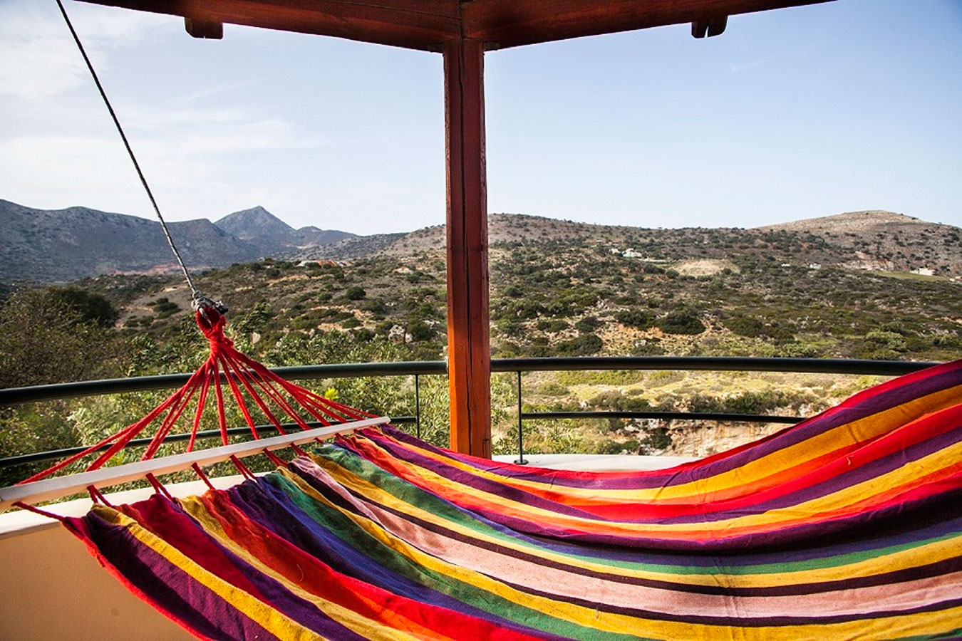 Οι μεγάλες βεράντες με έπιπλα κήπου σε κάθε όροφο προσφέρουν πανοραμική θέα σε βουνό, θάλασσα και φαράγγι και θα σας βοηθήσουν να χαλαρώσετε ιδιαίτερα.