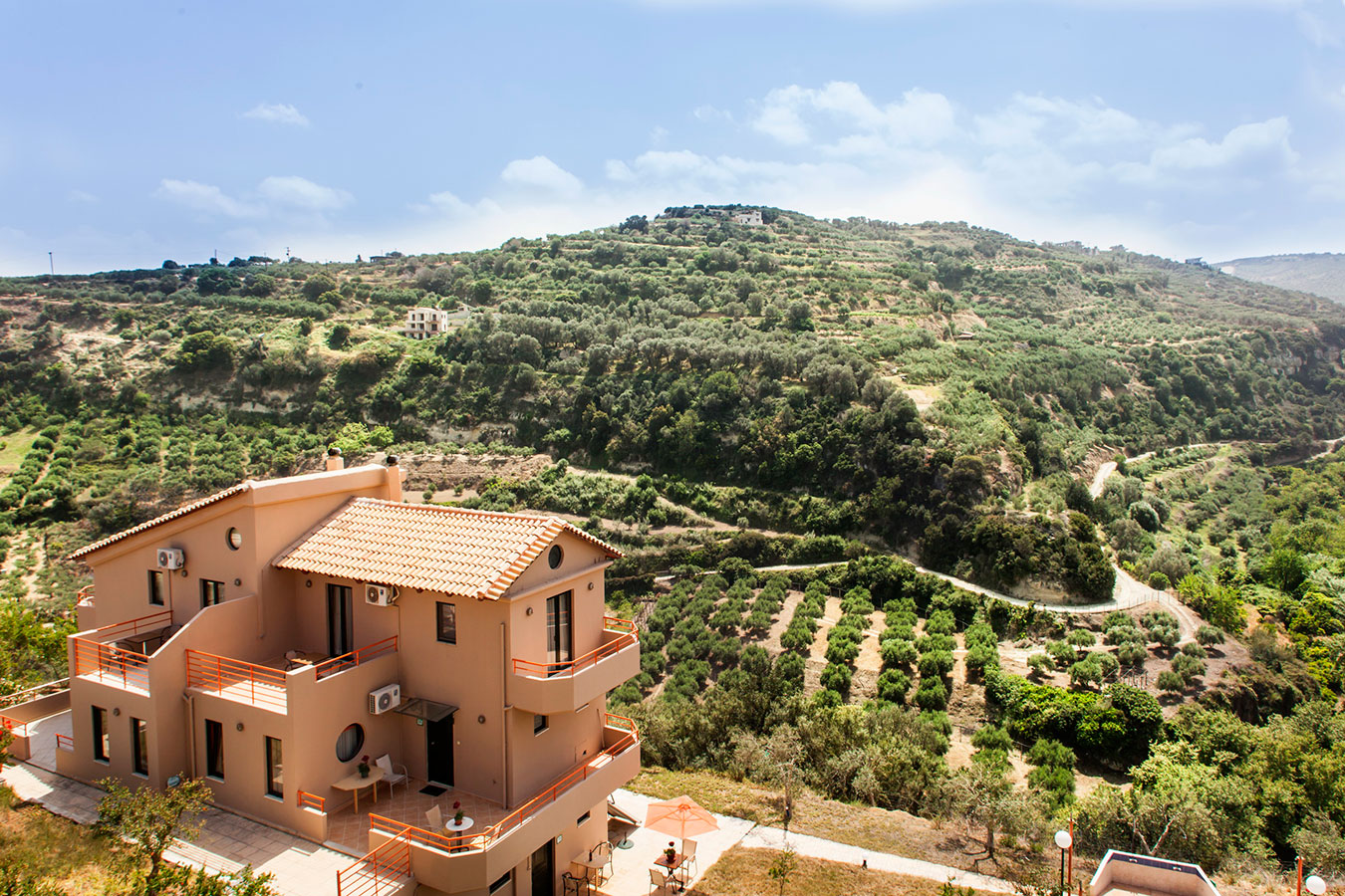 Οι μεγάλες βεράντες με έπιπλα κήπου σε κάθε όροφο προσφέρουν πανοραμική θέα στο βουνό και στη θάλασσα και θα σας βοηθήσουν να χαλαρώσετε ιδιαίτερα.