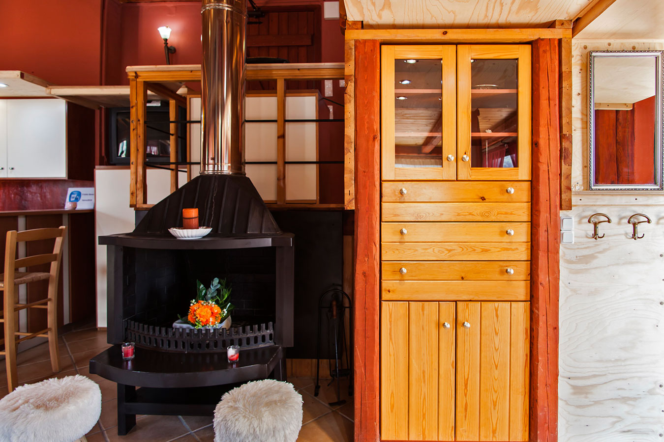 Tο 2o επίπεδο διαθέτει 2 διπλά και 1 μονό κρεβάτι (απομονωμένα μερικώς από τον υπόλοιπο χώρο), καθιστικό με 2 καναπέδες κρεβάτια, καθώς και W/C με ντους. Επίσης διαθέτει πλήρως εξοπλισμένη κουζίνα (ψυγείοκαταψύκτης, ηλεκτρικός φούρνος, κουζίνα, βραστήρας) για να νοιώσετε σαν στο σπίτι σας, δορυφορική τηλεόραση και DVD Player καθώς και τζάκι το οποίο θα σας προσφέρει μια ξεχωριστή αίσθηση και συντροφιά, ειδικά τις βροχερές ή κρύες βραδιές.